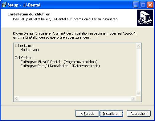 Das Setup installiert das JJ-Dentalprogramm auf Ihrem System.